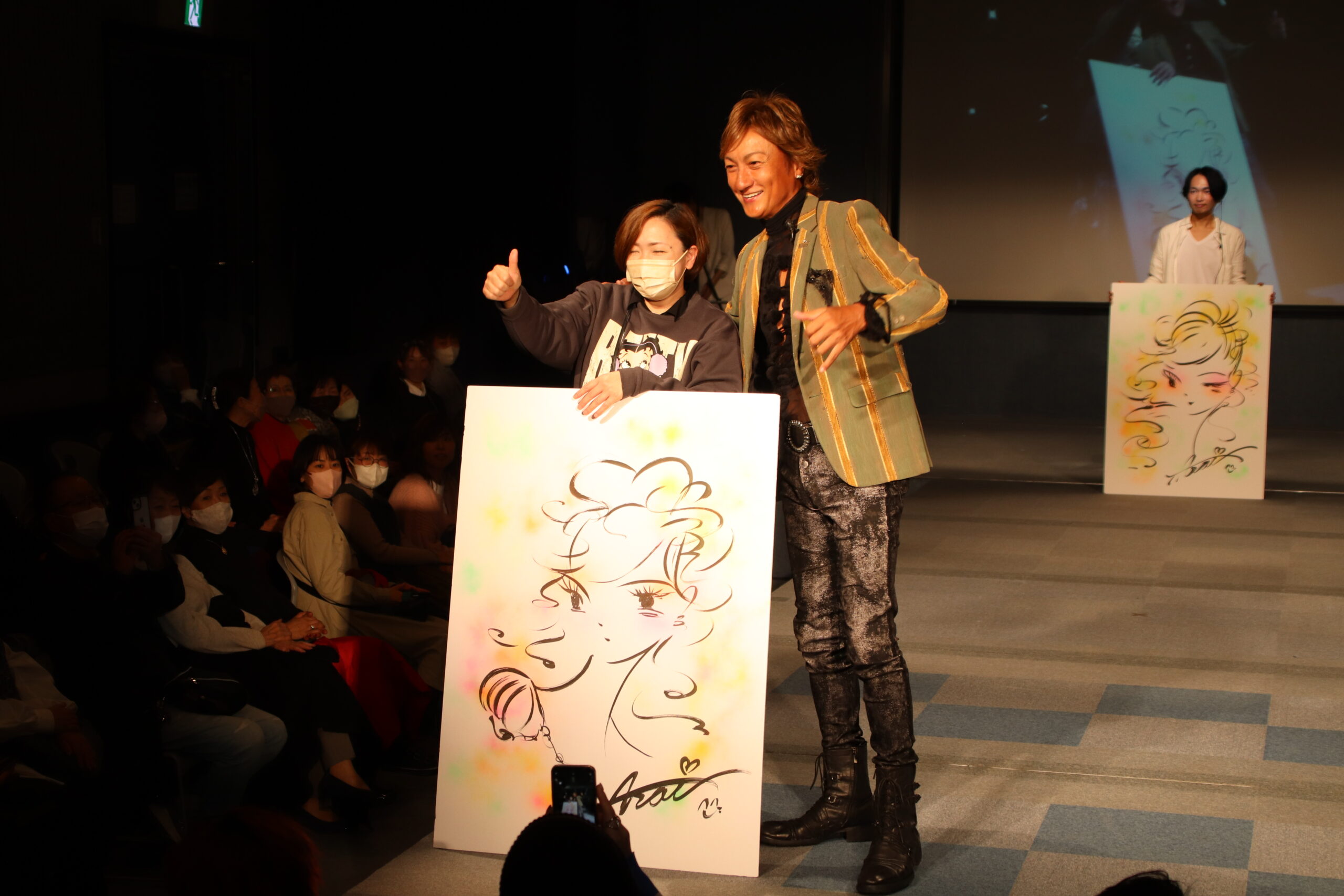 完成したデッサン画2点を観客にプレゼント頂きました!